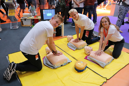 Das Jugendrotkreuz des Landesverbandes Niedersachsen war am 19.06.2019 auch auf der IdeenExpo in Hannover vertreten. Am Stand des Landesjugendrings konnten Besucher von unseren Jugendrotkreuzlerinnen und Jugendrotkreuzlern unter anderem etwas über Wiederbelebung lernen und spielerisch gegeneinander antretend auch die richtige Stärke der Herzdruckmassage lernen.